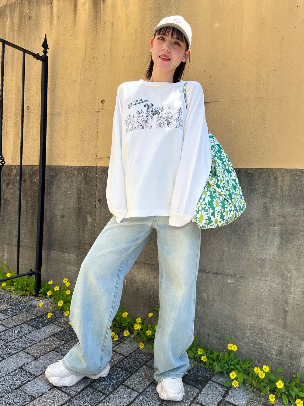 anap mimpi(ANAP Online Official)のTシャツ/カットソー「ダルメシアン ハイドアンドシーク プリント 長袖 ロンT」を使ったコーディネート