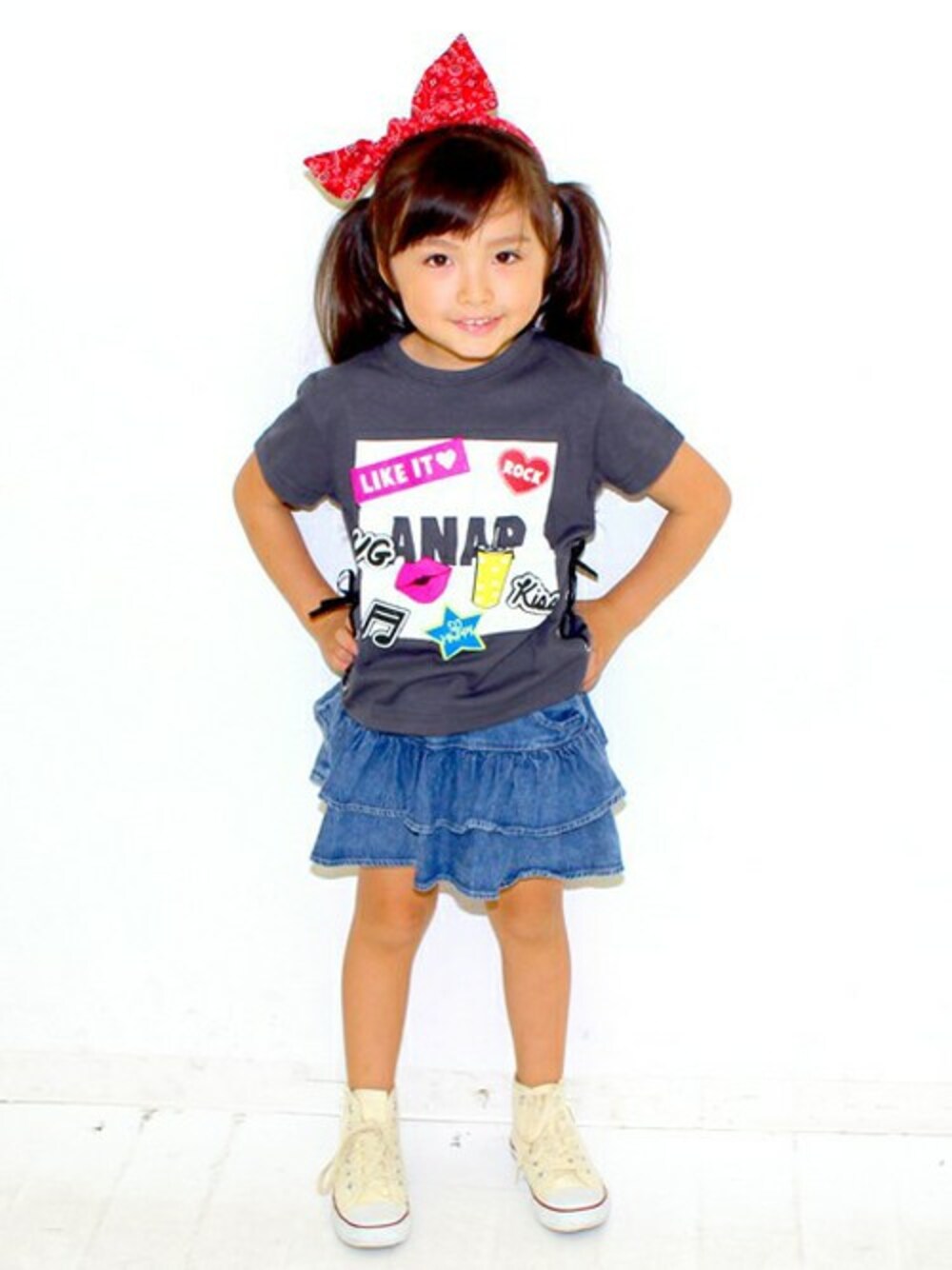 ANAP KIDS OfficialのTシャツ/カットソー「編み上げ風ROCKTee」を使ったコーディネート