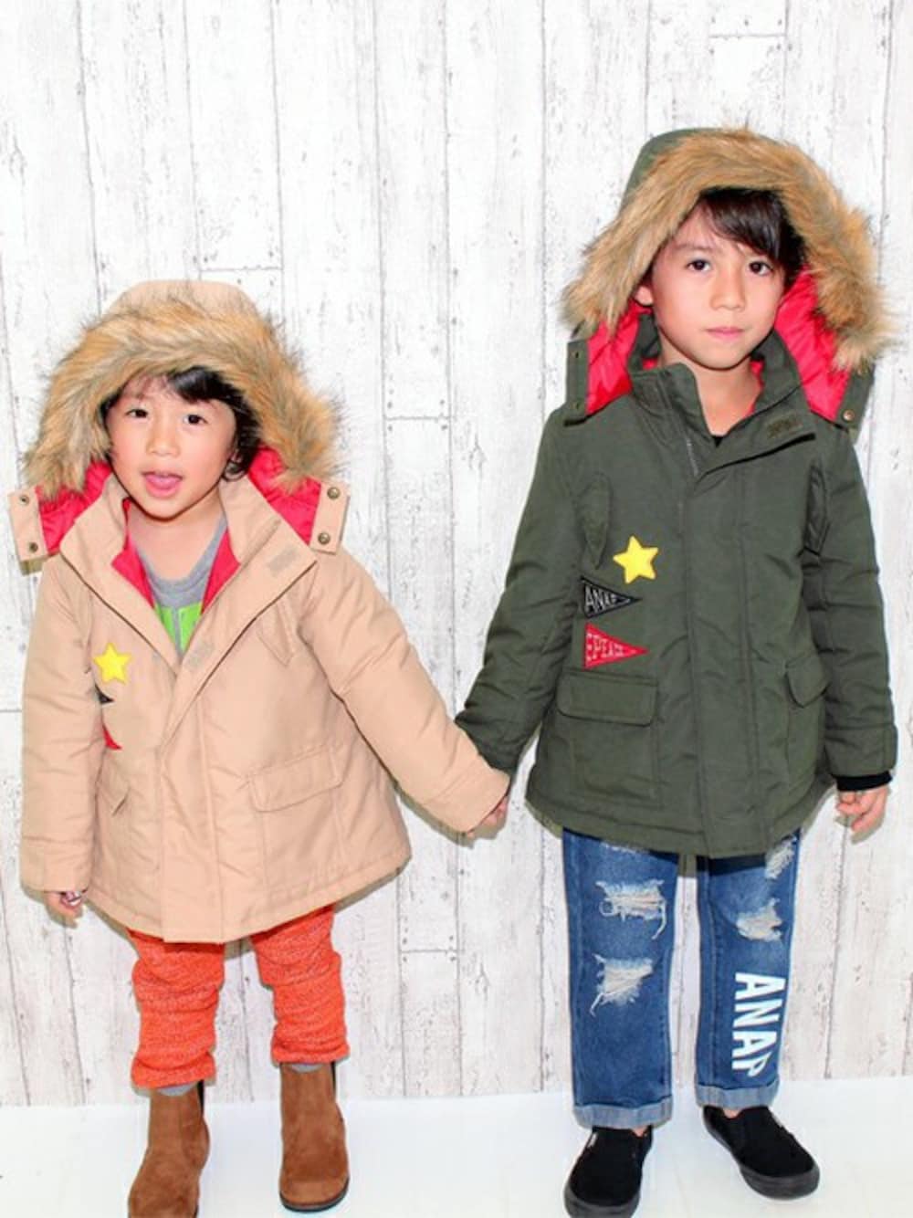 ANAP KIDS Officialのモッズコート「ワッペンデザインモッズコート」を使ったコーディネート