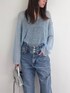 ふわっとした糸🧵のゆるニットがかわいい🩵 デニムと合わせてワントーンコーデにしてみました🫶🏼