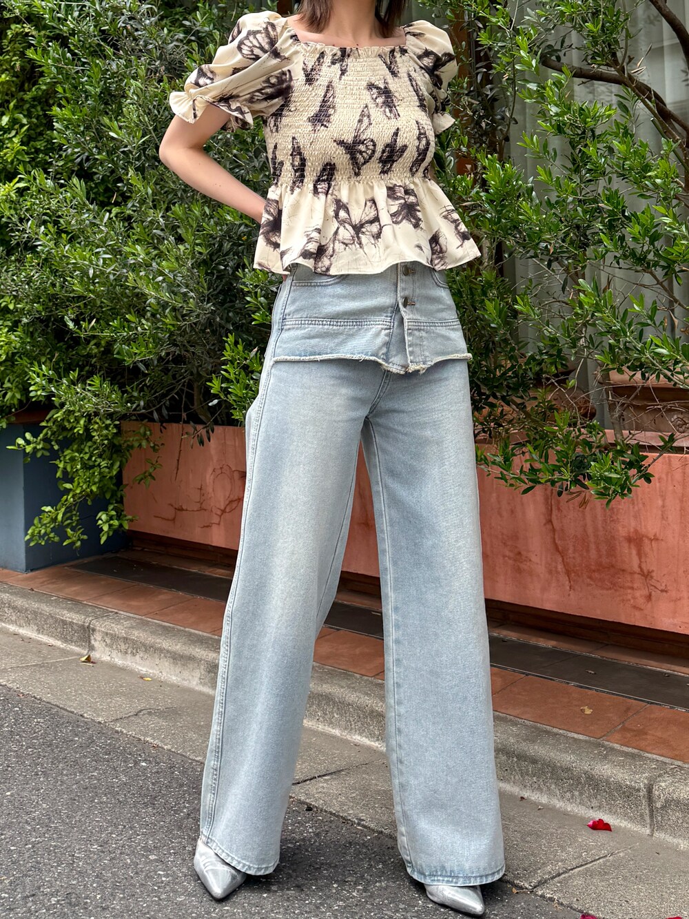 ANAP official(ANAP Online Official)のシャツ/ブラウス「バタフライ ペプラム ブラウス」を使ったコーディネート