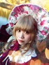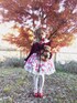 2022 WINTER 02 冬というよりは秋っぽい、朝に決めたコーディネートです。鮮やかな薔薇柄シフォン生地のギャザースカート&ボンネットと、ベルベットの長袖ボレロ。足元はストッキングの上にレースの靴下重ね履き(それでも冬は寒い)。付け襟とカットソーは前々回着たのと同じです。なかなか履く事がないすごい厚底ハイヒールのパンプス。お笑い芸人の渚さんのような金髪マッシュボブにロングカールを組み合わせたようなヘアスタイル(笑)。メイクはフロレットのアイシャドウ(十層フィルター)、キャンメイクのリップ(ストロベリーモカ)、フラワーノーズのチーク(Day dreaming)で、アイシャドウと青カラコンメインな感じです。 ボンネット:Angelic Pretty/頭のリボン:小能熊lolita/ボレロ:HMHM・Lolita/リブトップス:DearMyLoveRose/ウエストニッパー:aimerfeel/キャミソール:PeachJohn/ドロワーズ:metamorphose temps de fille/ストッキング:tutuanna
