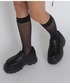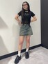 黒×デニムでまとめたワントーンコーデ🖤 レース×デニムスカートで甘辛バランスを◎ ちょいモード感あるアイウェアもアクセントに!