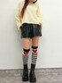 リボン🎀デザインがポイントの2wayカーディガンにシアートップスのレイヤードコーデ😉 ボトムにはフェイクレザーショートパンツを合わせてカジュアルガーリーに💖 ハートボーダーのソックスもポイント🖤❤️