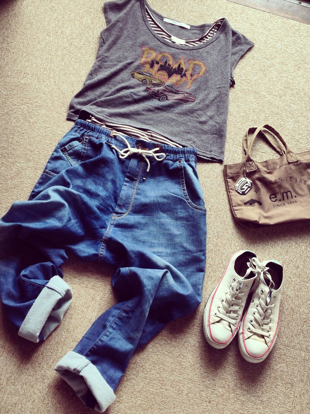 tops. pageboy pants. nobrand ちょっとそこの生協さんまで なんてことないラフコーデです\(^o^)/