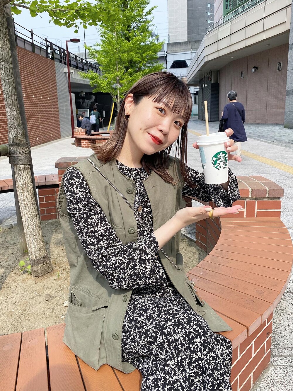 花柄ワンピはジレ合わせがおすすめです♡