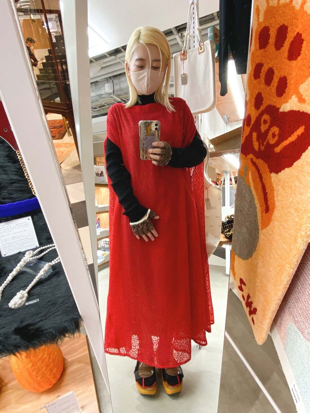 寸足らずというニュアンスを持つネーミング、 itsy-bitsy gloves は長めの袖のトップスやアウターを着た時に袖口でもたつかないのが最高。 最小限のデザインですが温かいです。 昨日からメンズサイズもリリースされました。 今日は銀座に衣装のお仕事をしたミュージカルNOW.HERE.THIS.を観劇しに行きました。 スタッフの一員として劇場に通っていたときは動きやすさ重視の格好でしたが今日はお客さんとして行ったのでおめかしモードです。 タイツと靴下重ねばきでサンダルスタイル! 雨だし爪先凍えたらどうしようか不安だったけど意外といけました!