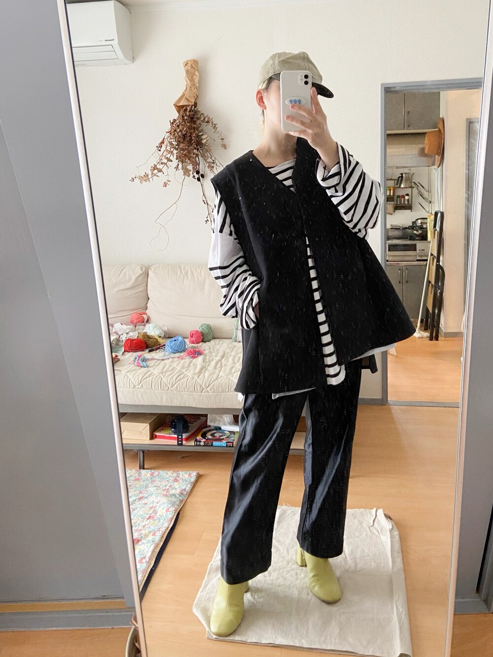 ボーダーの着回し。 ベストってレイヤードアイテムとしてしか意識したことなくて機能性を意識しなかったのだけど、 梅雨に入って肌寒くなって、 アウターを着ると暑いし難しいなというときにベストで肩とボディがカバーされるとちょうどいいことに気づきました。 大きなポケットがあるのも◎ 今の季節の体温調節とレイヤードで出番増えそうです。 足元もしまったカラーブーツ取り出して履いてみたり。