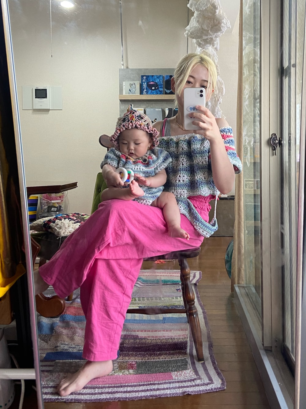 先日ベビー作品をローンチするオープンアトリエを開催した時の装い。 赤ちゃんのロンパースと同じ柄数の大人トップス。 ピクシーハットも人気でした。 コットンニットは長いシーズン着用できてお手入れも簡単!大人も子供も着心地の良いサマーニットアイテムです。