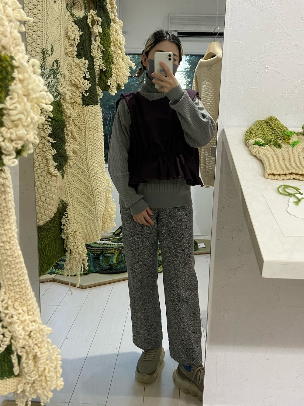 グレートブラウン。 ニットのサイズ感と厚みがちょうど良すぎる。好き。