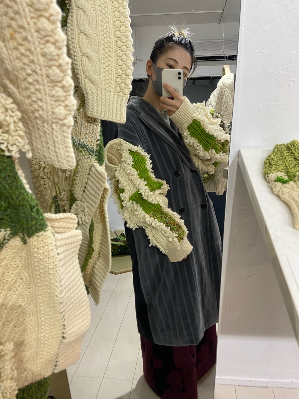 苔がテーマの展示会でした。 このアームウォーマーは似合いすぎて自分のにしました。コートの上からつけるのが気分。