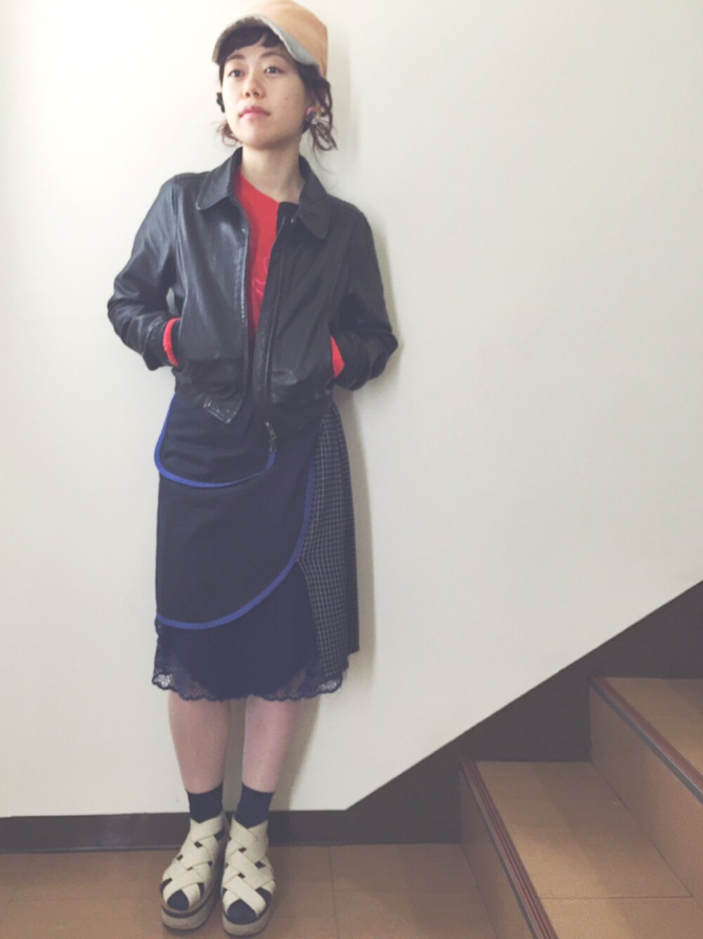 革ジャンがまだまだ手放せない。POTTOのキャップも永遠にお気に入りです。