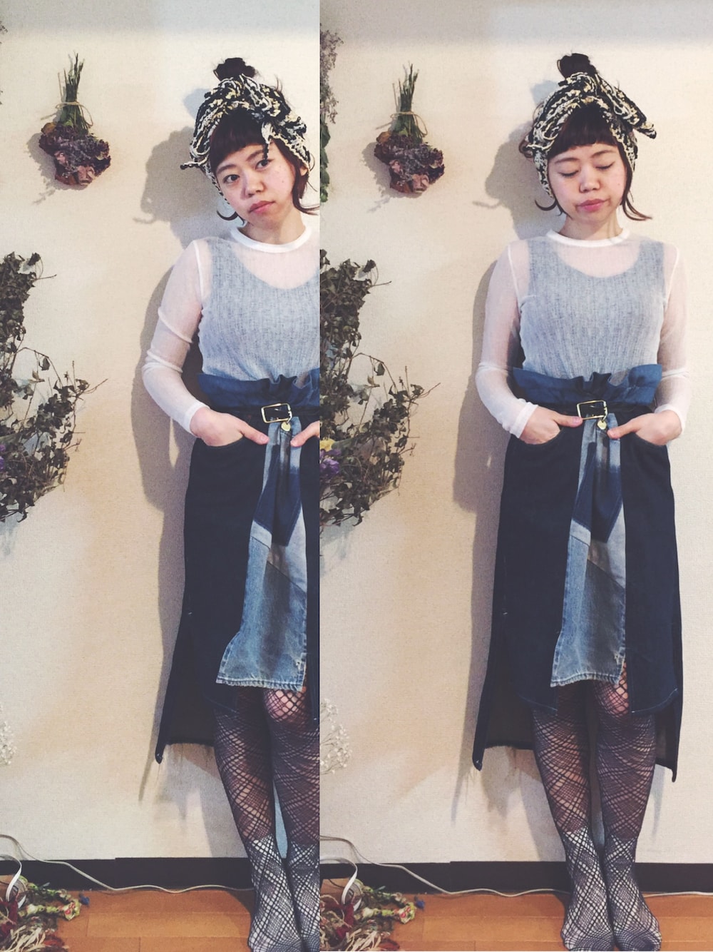 シースルーの白の中に濃い色。濃い網タイツの中に白。何と透けを合わせるか試行錯誤中です。