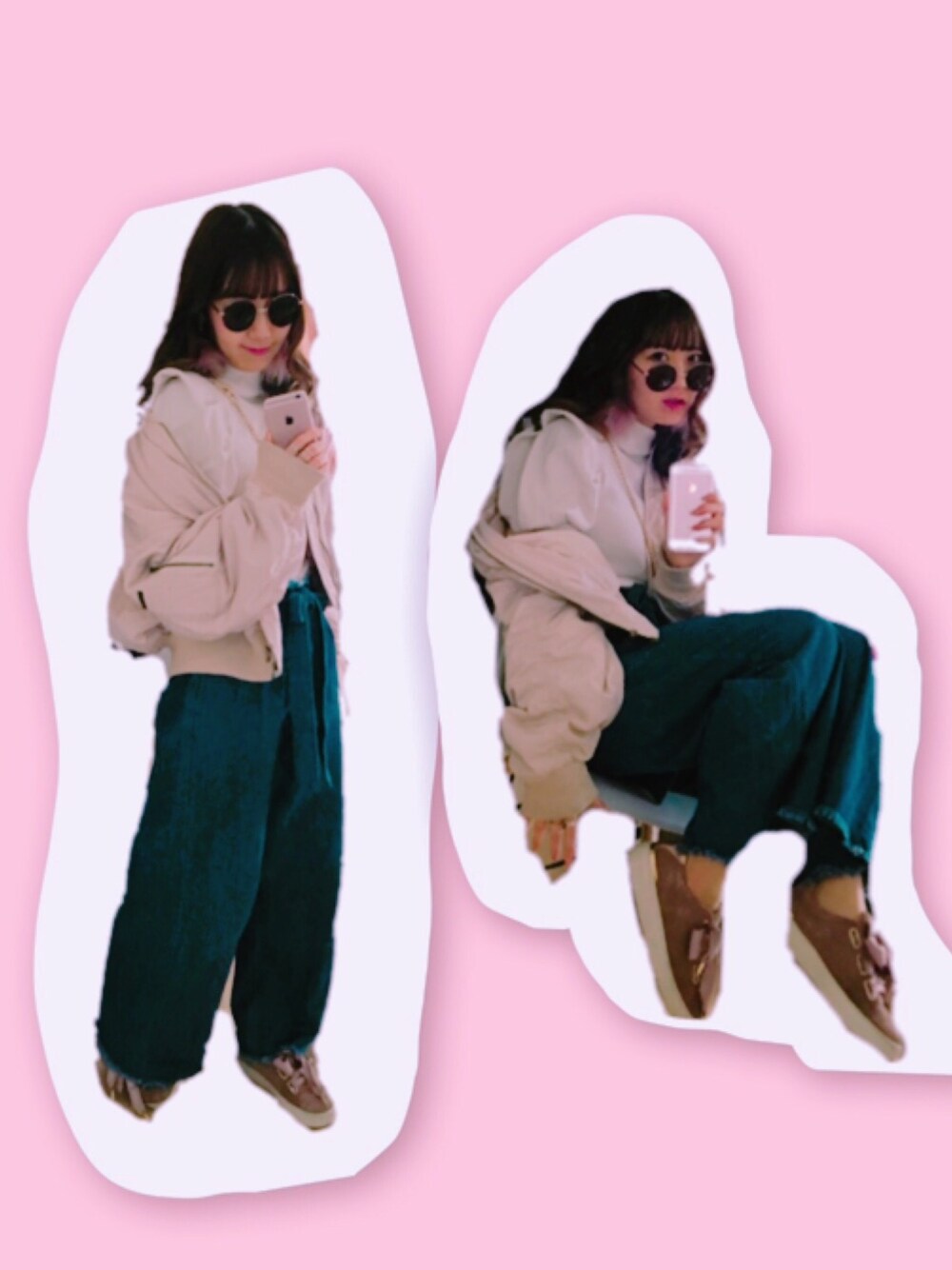 tops/snidel pants/LOWRYS FARM outer/another edition bag/Supreme.La.La shoes/HAWKINS 今日はガーリーカジュアル💫 anothereditionのアウターゆるくて可愛い💕 ホーキンスのリボンスニーカーはお友達からの贈り物👟🎗