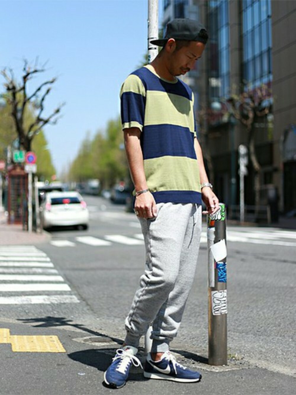 ストリートなテイストのスタイリングから、外しアイテムとしてなど、様々なコーディネートに合わせやすいスウェットパンツを使用したスタイリング。 ハイゲージコットンで編み上げられた半袖ニットは、エアリーな質感で着心地抜群!