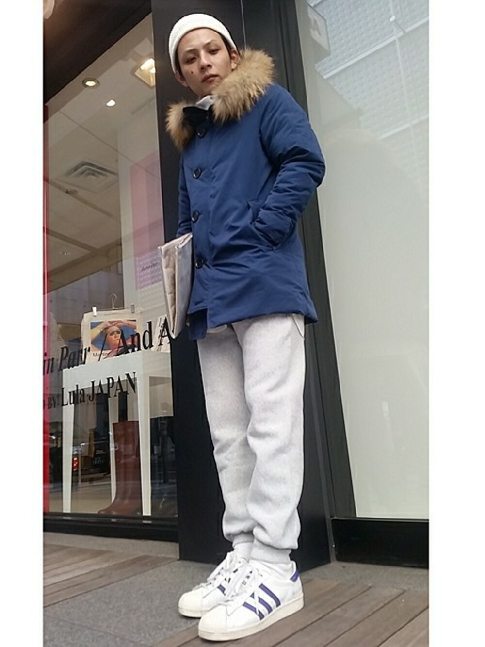 マットな質感のラクーンファー付きダウンコートを使ったコーディネート。 ファー部分は取り外し可能なので、スタイリングに合わせてアレンジしてみてください。