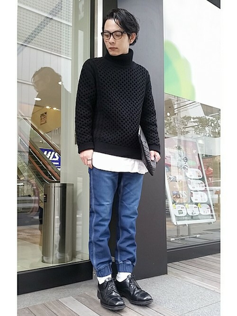 LEE EASY PANTSに今期注目のタートルネックニットを合わせてスタイリング。 カジュアルな雰囲気のイージーパンツですが、レザーシューズとの相性も良く、上品なコーディネートもバッチリです!