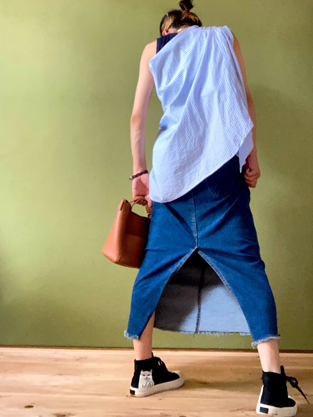 ご覧いただきありがとうございます! バックスリットがかわいいデニムスカートのコーディネートです! カジュアルにコーディネートしてみました! よかったら、いいな、フォローもよろしくお願いします🐱