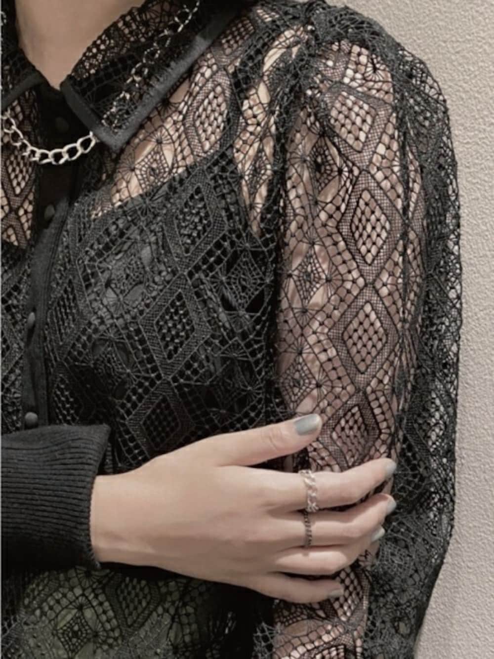 and cloud(and cloud)のリング「Square Cable Chain/Curb Chain Set Ring」を使ったコーディネート
