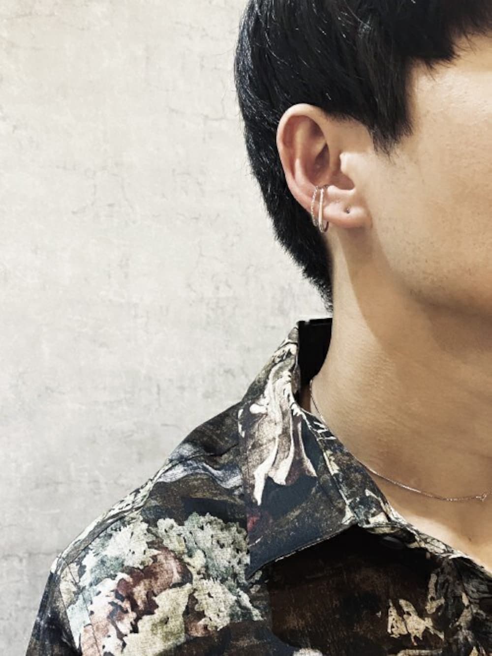 【 Pierce × Earcuff 】 ダイヤモンドのピアスに、華奢なチェーンが印象的なイヤーカフをレイヤード。 同シリーズのネックレスと合わせて、まとまりのあるスタイリングに。