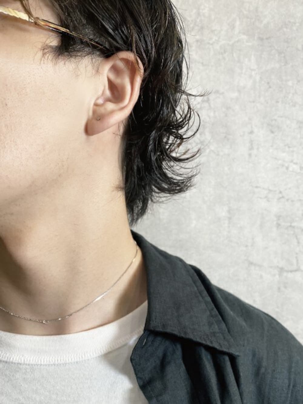 【 Diamond Items 】 ダイヤモンドのピアスにネックレスを合わせたスタイリング。 シンプルながらもひと癖あるデザインで、メンズの方にもぴったりなアイテムです。