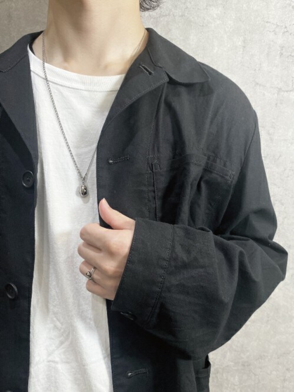 【 Catnap Collection 】 植物の種子をイメージしたネックレスに、同コレクションのリングを合わせたスタイリング。 シルバー×ブラックカラーでエッジを効かせて。