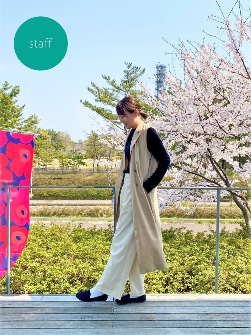staff星野 今日は天気もいいのでデッキでお花見ランチ♪