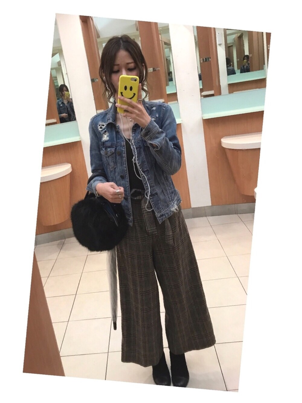 ブラック系のブーツを着用したレディースの秋コーディネートの1枚目の写真