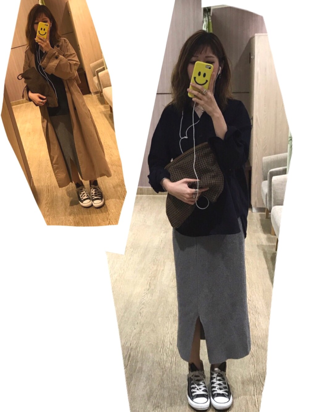 ブラック系のスニーカーを着用したレディースの秋コーディネートの1枚目の写真