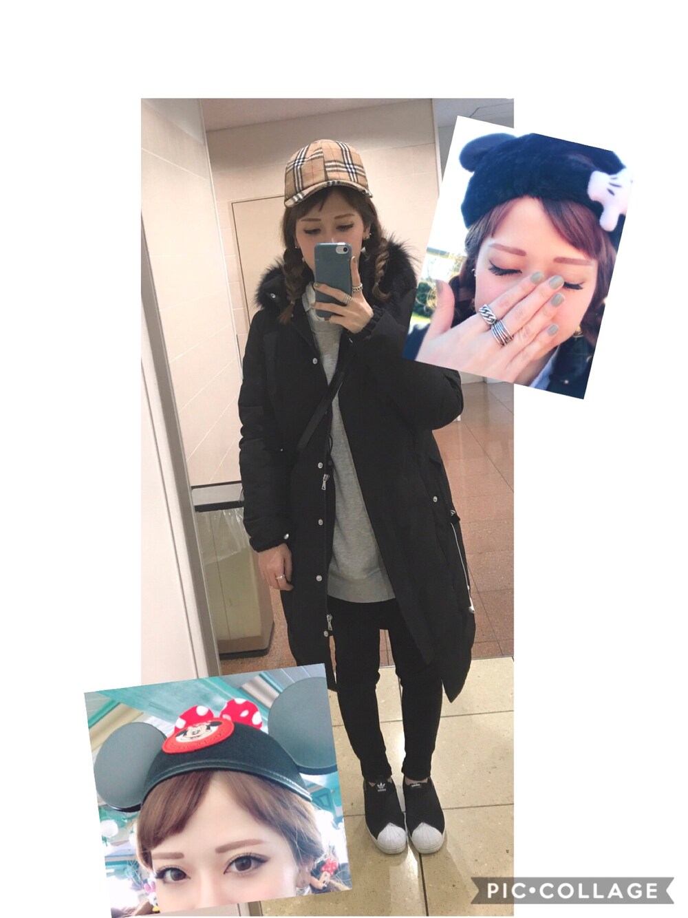ブラック系のダウンジャケット/コートを着用したレディースの冬コーディネートの1枚目の写真