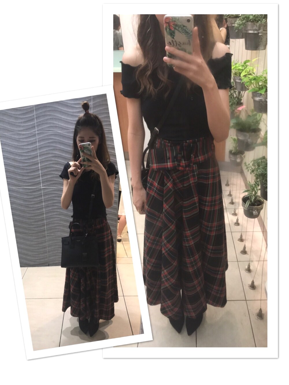 レッド系のスカートを着用したレディースの夏コーディネートの1枚目の写真