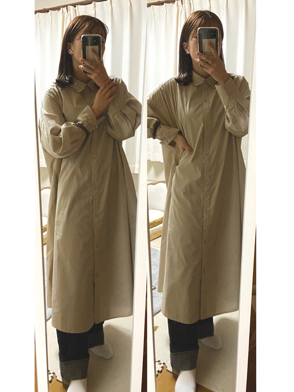 このワンピ去年のGUだけど、ほんとお気に入り💡 デニム合わせなの久しぶり〜シャツワンピ×デニム合わせいいかんじ イヤリングがお気に入りなの〜❕