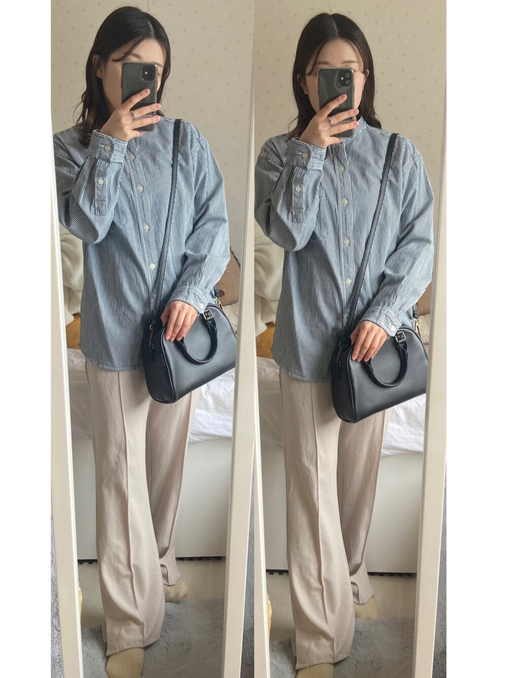 ストライプシャツ好きすぎ…ホワイトパンツ合わせるだけで一気に春コーデになるからつい同じのばっか🌸
