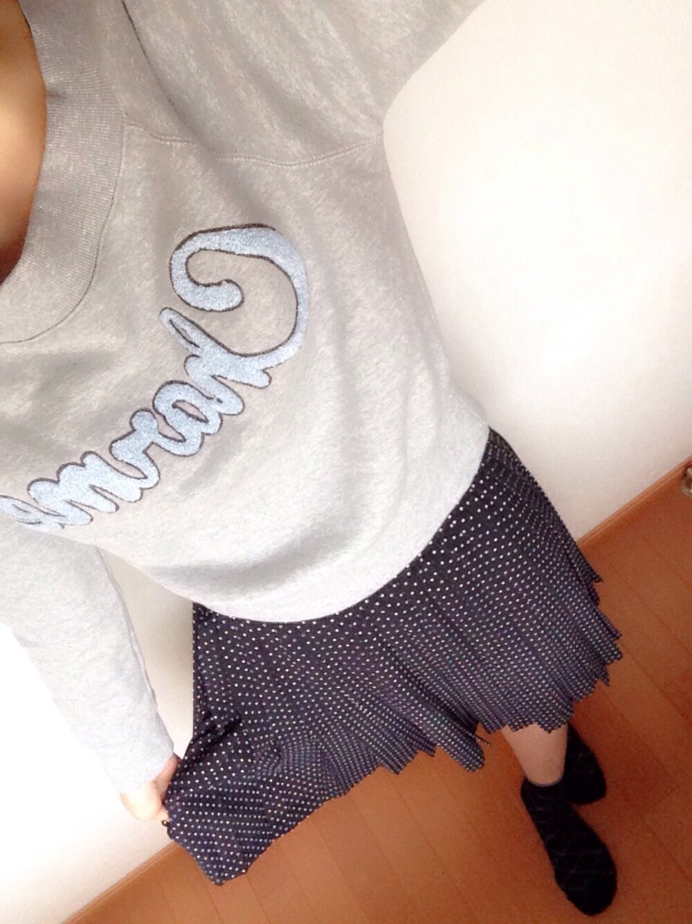 maiaのスウェット「サガラ刺しゅうロゴオフショルダープルオーバー」を使ったコーディネート
