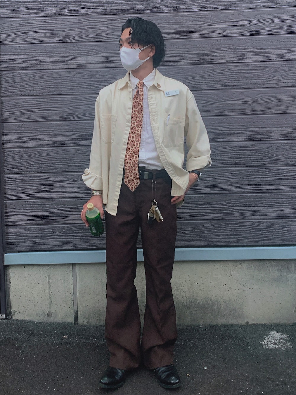白とブラウンを使う秋コーデ シャツブルゾンにシャツでタイドアップもあり このスタイルが今日の気分です😎