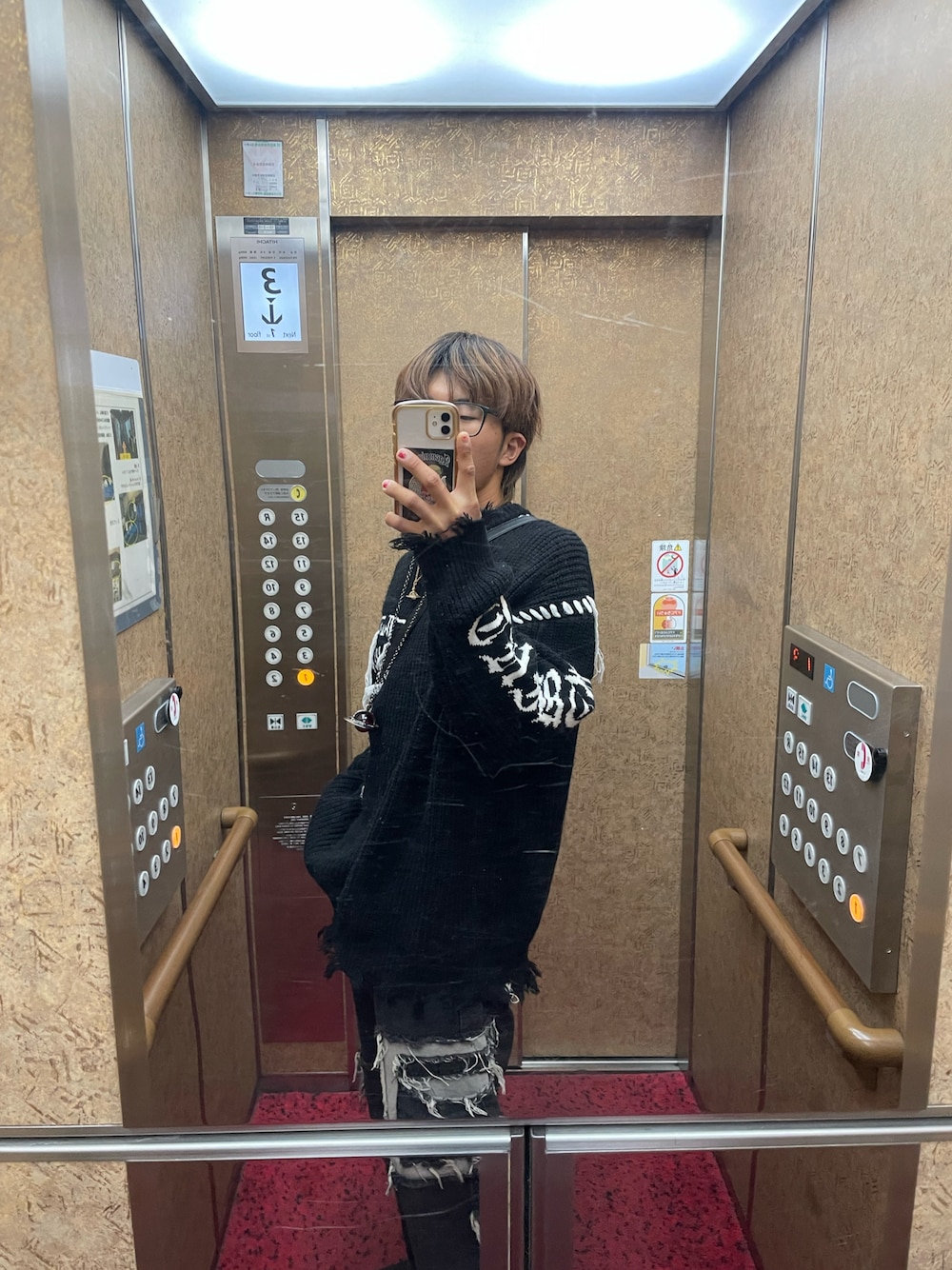 ちゃたろうのニット/セーター「A'GEM/9 × .kom『NOVESSEL/ノベセル』ステッチデザインプルオーバーニット」を使ったコーディネート
