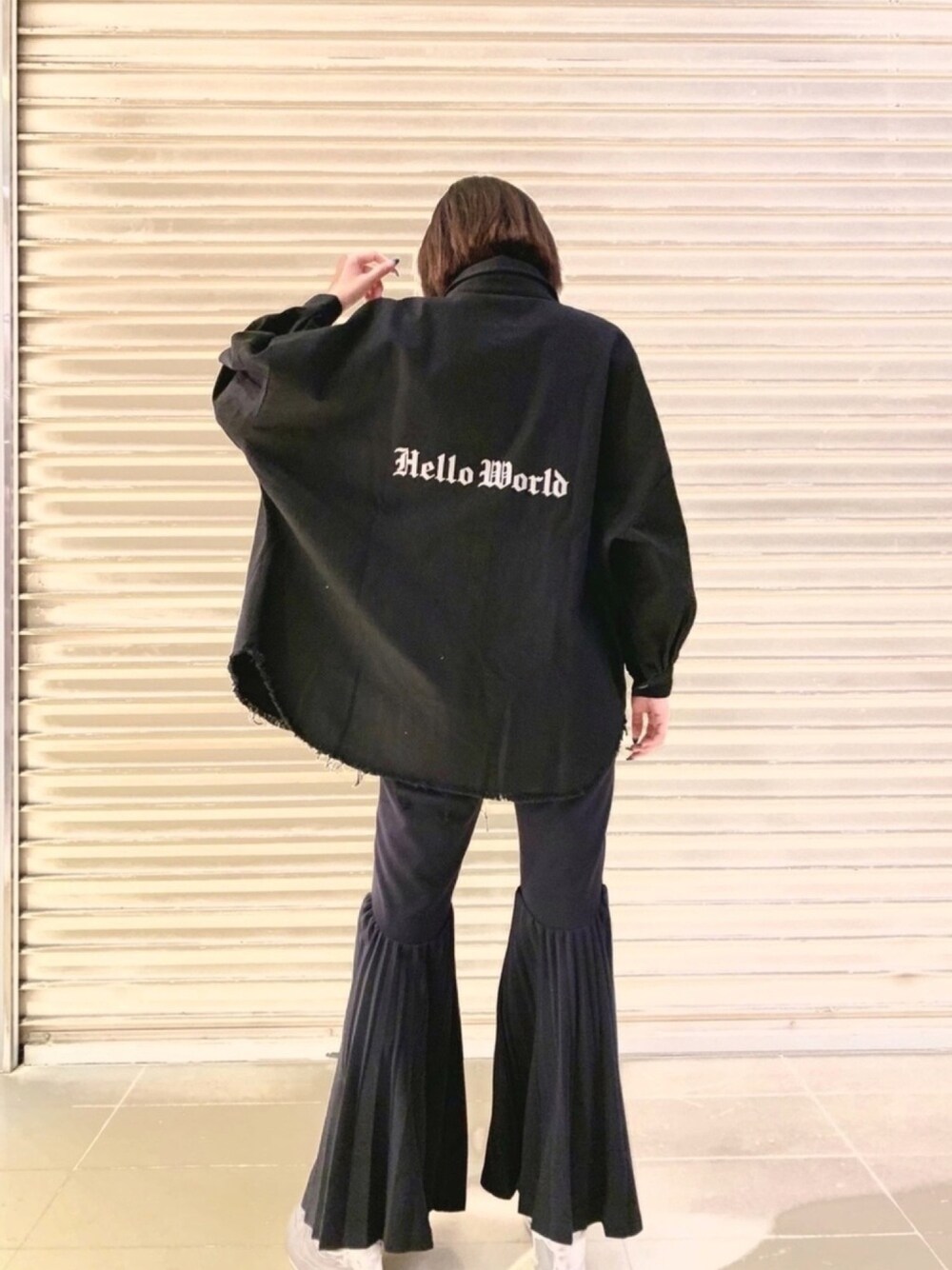 切りっぱなしの裾がカッコ良いシャツ👏 砂時計のシルエット大好き⏳ 個性派パンツも色味合わせるとまとまりますね🦨