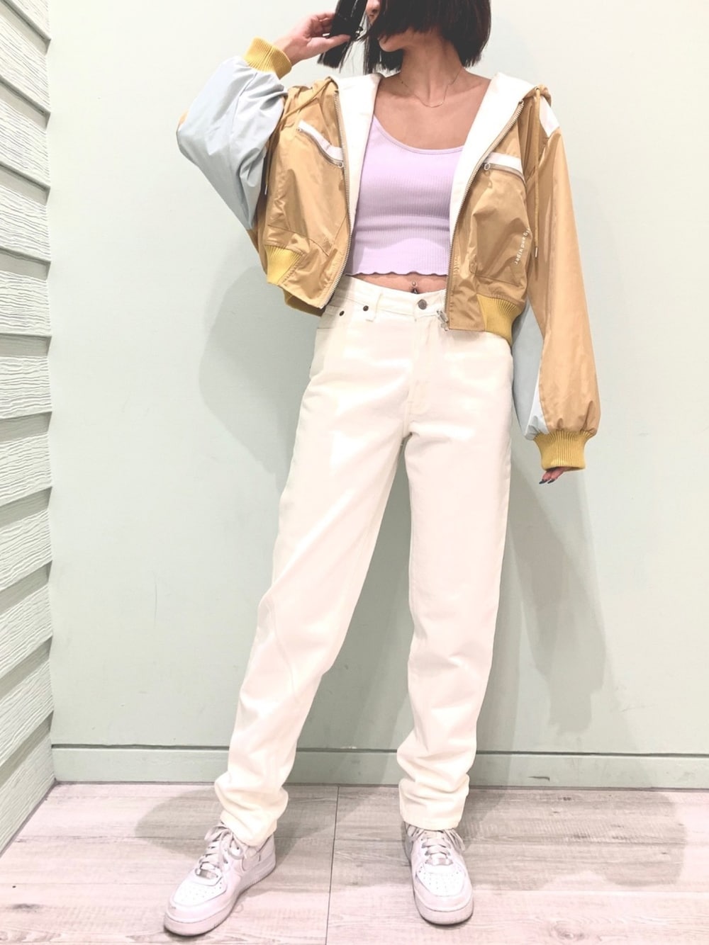 NEW春のアウターはリバーシブルで裏返したらWHTなのでワントーンコーデも楽しめそう👏 全体を明るい色で合わせて春らしく🌸 そでの切り替えがBLUで可愛いです💙