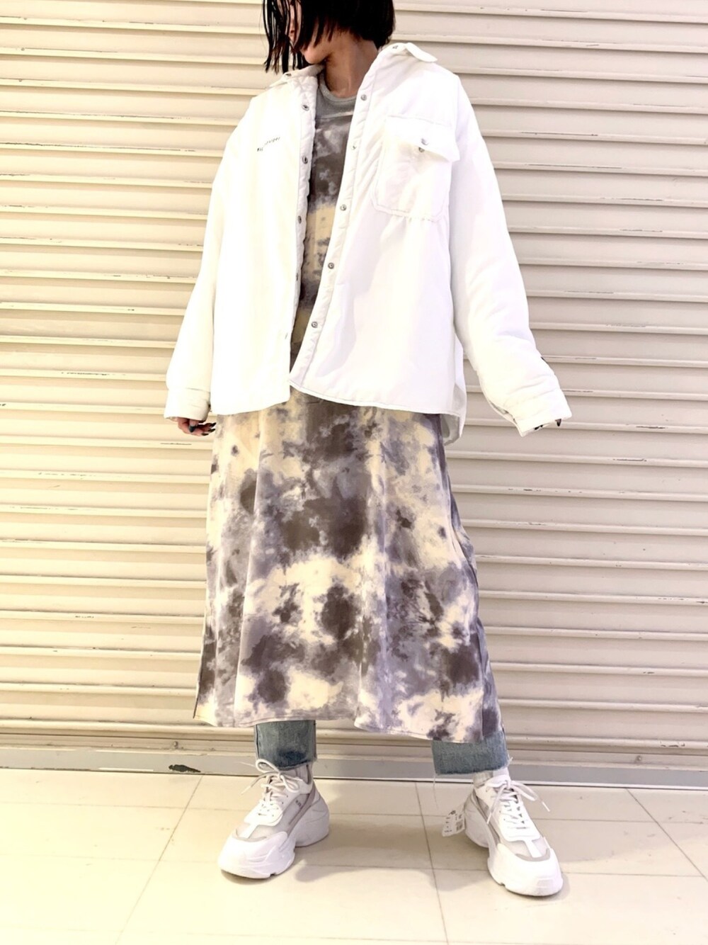 今年トレンドのタイダイ❤︎ キャミワンピなのでインナー薄くして夏まで使えます🌺 デニムチラッとみせてるのもポイントです☝️