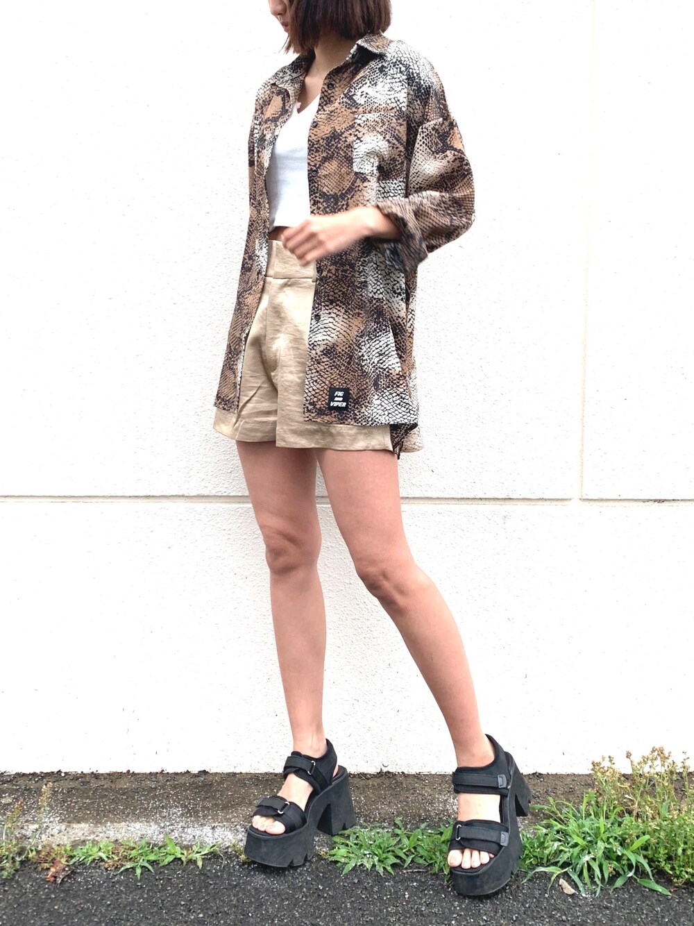薄手のパイソン柄シャツはサラサラな生地で着心地良いです👏 ブラウン系でまとめると今年らしい雰囲気で着れちゃう🐍