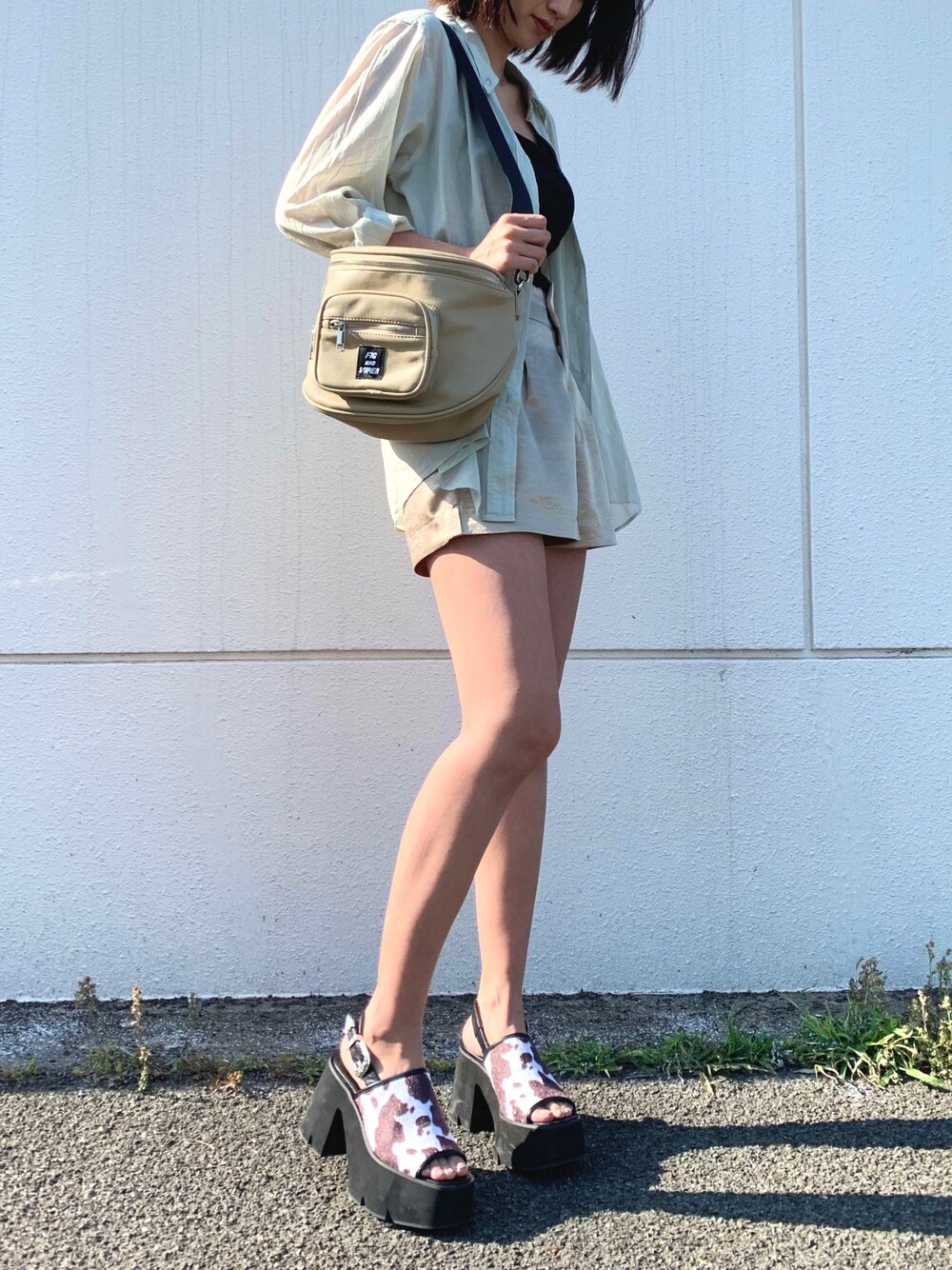 ライトグリーンのシアーシャツと爽やかにBEG系でまとめました🙆♀️ ベージュとカラーものってオシャレ感でて良いかんじ☝️