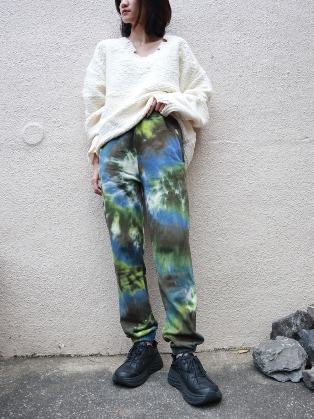 ダメージニットは大きめだけどVネックだからスッキリとした印象に☝️ パンツはとにかく可愛いタイダイジョガーパンツ🩲♡ ゆるゆるコーデをしてみました🧶