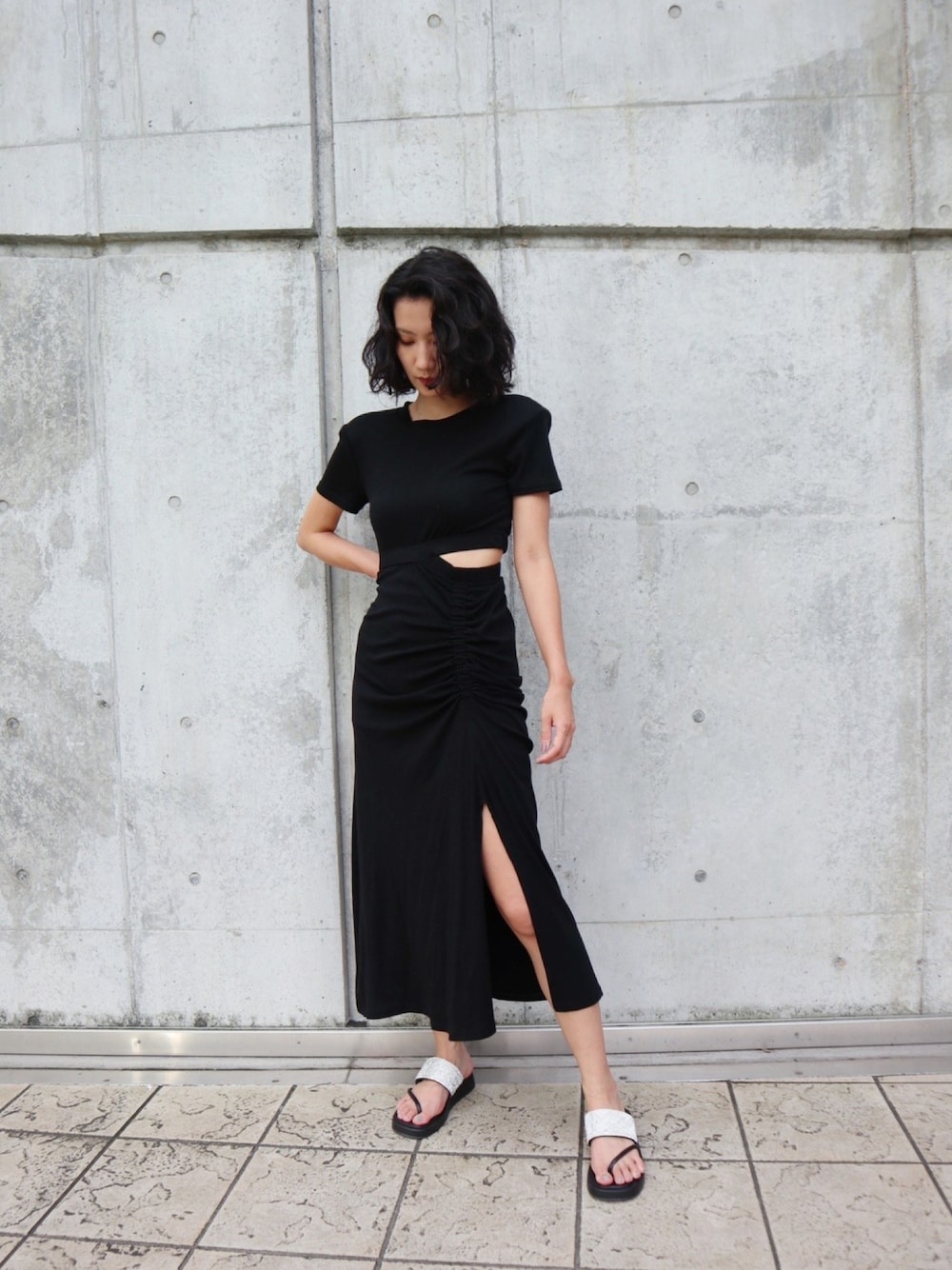 FIG&VIPER_HITOMIのワンピース「サイドスリットロングOP」を使ったコーディネート