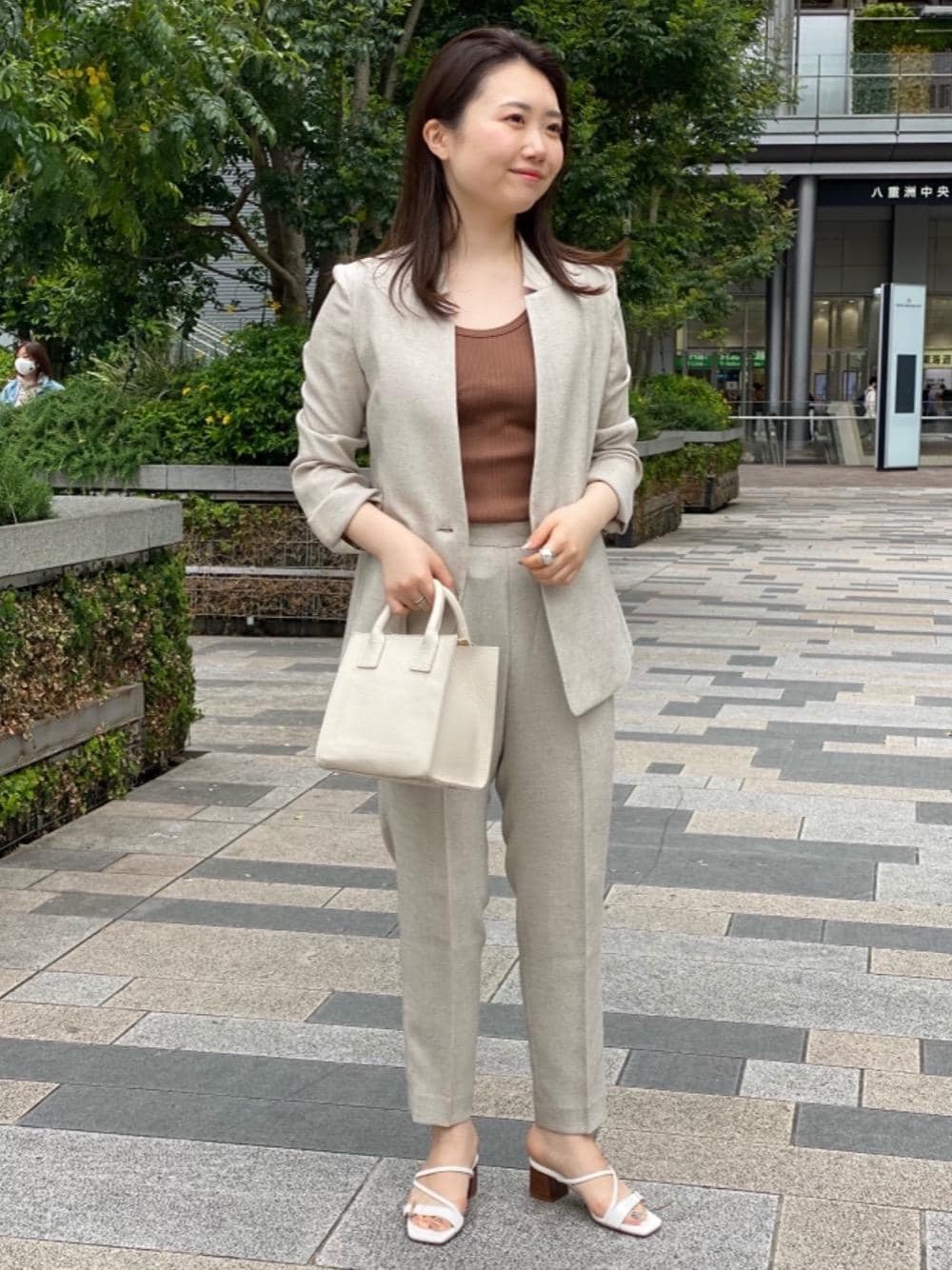 身長:157cm 着用サイズ:トップス(size FREE)ジャケット(size36)パンツ(size36) 初夏にオススメのセットアップスタイルです。足元はサンダルを合わせてカジュアルに。サラッとした素材がこれからの時期にぴったりです◎