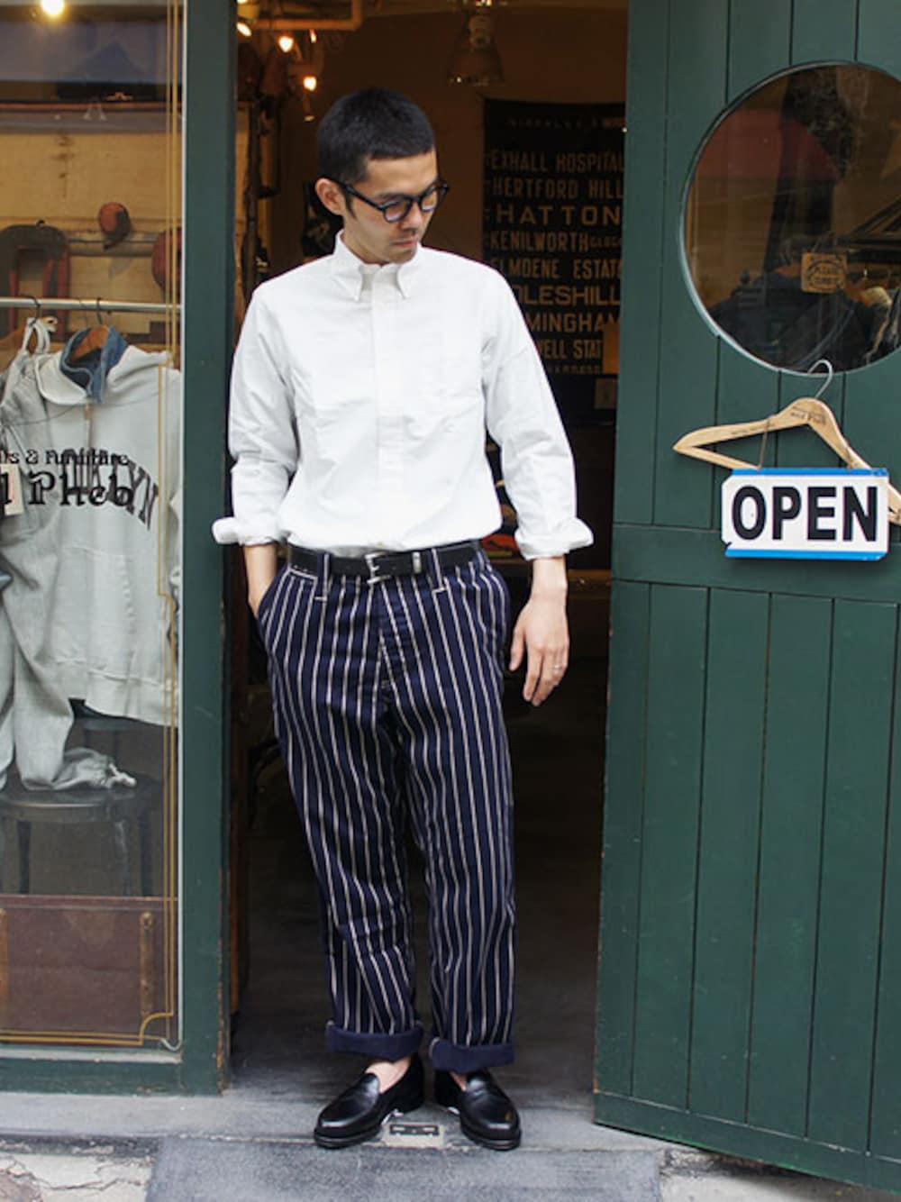春になると新しいスタイルにも 挑戦してみたくなる 今回は「タックイン」。 ベルトはバックルに存在感のある クイックリリースベルト。 某ショップが別注してから 認知度も高まったこのバックル。 元祖はここのマーティンフェイジー氏が 開発したものと聞くと説得力が出る。 あとは春はホワイトシャツの出番だから 今の気分にもマッチするゆったりとした アメリカっぽいものを。 ウェスト部分に少しシャツが のっかる位が丁度良い。 スタッフDATA: 身長:約175cm 体重:約60kg ■シャツ インディビジュアライズドシャツ ''REGATTA OX''ボタンダウンシャツ (STD-FIT-P11WOO-WHT) 22,680円 着用サイズ:15(M相当) 着用カラー:1.ホワイト(P11WOO) ■パンツ ヤーモ ''Bucher Stripe''バックベルトワークパンツ (YAR-15SS-P3) 24,840円 着用サイズ:M 着用カラー:1.オーバーダイドネイビー ■ベルト マーティンフェイジー ''1.25inch BRIDLE''クイックリリースレザーベルト (125-QUICKRELEASE-BRIDLE) 18,360円 着用サイズ:34 着用カラー:1.ブラック/ピューター ■シューズ ジャランスリワヤ フェブオーダー''BLACK CALF''ローファー (98324-3142-BLACK) 34,560円 着用サイズ:8/27.0cm 着用カラー:1.ブラックカーフ ■メガネ モスコット ''レムトッシュ''メガネ・眼鏡 (LEMTOSH) 29,160円 着用サイズ:M-46 着用カラー:1.ブラック 楽天市場店 http://item.rakuten.co.jp/smaclo/c/0000001201/ ヤフーショッピング店 http://store.shopping.yahoo.co.jp/pheb/20152f032f4.html
