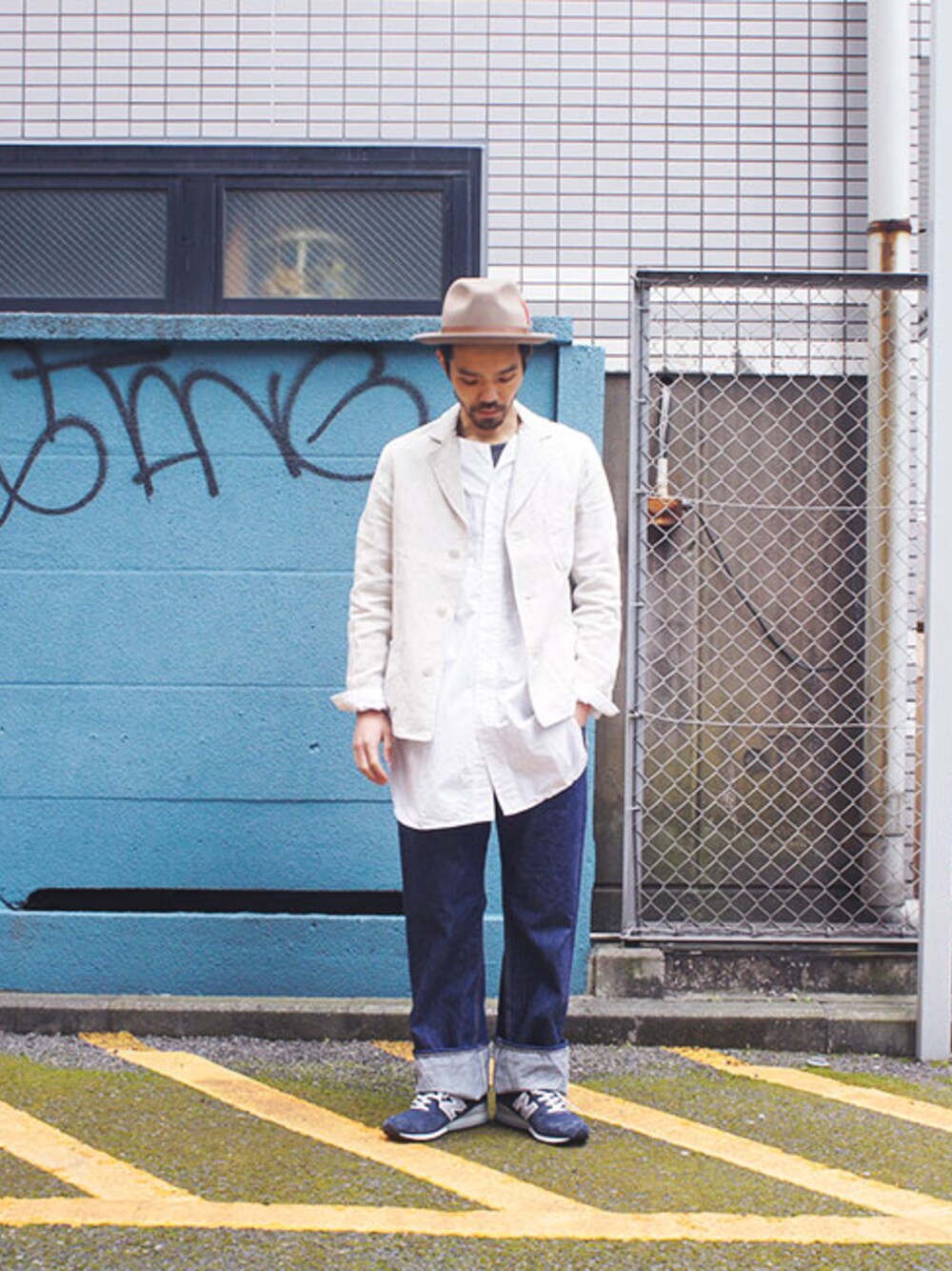 春になる。 ジャケット一枚で 外を歩くのが楽しみだ。 今回着用したのは リネンの風合いが爽やかな ヤーモのドライバーズジャケット ドライバーズジャケットは その名の通り ドライバーの為のジャケット。 イギリスの公共交通機関に 従事する方々 (例えばバスの運転手や 鉄道、地下鉄の駅員さん) に支給されていたジャケットを ベースに製作されたもの。 見た目のクリーンさを保ちつつ ワークウェアとしての 動きやすさや頑丈さを 兼ね備えている。 公共のワークウェアらしい ブランドの主張をおさえた 一歩引いたデザインも良い。 今年も昨年と同様に ブリスベン・モス社の リネン生地を使用。 このブリスベン・モス社 イギリスで1858年創業(!!)という老舗。 (日本はその頃、安政) かのアレクサンダーマックイーンや バーバリー、バブアーなども ここの生地を使っているとの事。 さすが良い生地だなぁ。 こういう背景を知ると 使い続ける楽しみも増える。 インナーは今期注目のロングシャツ。 オアスロウからリリースされた ノーカラーのタイプ。 今っぽくハットを被ってみる。 この感じなら デニムは細身が鉄板かもしれないけど ここは太めで、厚めにロールアップ。 スタッフDATA: 身長:約175cm 体重:約60kg ■アウター ヤーモ ''リネン''ドライバージャケット (YARMO-LINEN-DRIVER-JKT) 28,080円 着用サイズ:40 着用カラー:3.ナチュラル ■インナー オアスロウ ''ホワイト''ロングワークシャツ (03-8073-69) 19,224円 着用サイズ:M(2) 着用カラー:1.ホワイト(69) ■パンツ サイベーシックス ''ワイドストレート''セルビッジデニム (5116-81634) 25,920円 着用サイズ:30 着用カラー:1.インディゴ(86) ■シューズ ニューバランス ''M996ネイビー''スニーカー (M996NAV) 24,840円 着用サイズ:US9.5(27.5cm) 着用カラー:1.ネイビー ■帽子 ニューヨークハット ''フェドラ''フェルトハット (5319-THE-FEDORA) 12,555円(16,740円) 着用サイズ:XL 着用カラー:1.アーモンド 楽天市場店URL http://item.rakuten.co.jp/smaclo/c/0000001301/ YAHOO!ショッピング店URL http://store.shopping.yahoo.co.jp/pheb/20162f032f.html