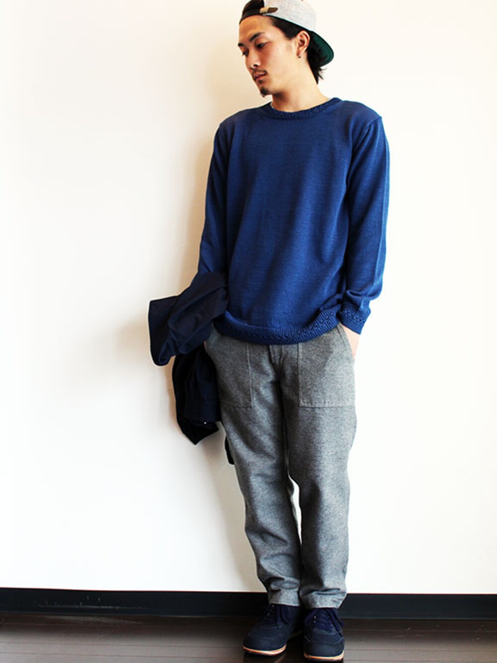 [モデル 174cm 62kg 足サイズ27cm ] CAP : THE STAKE (ザ・ステイク) x EBBETS FIELDS " FLANNELS BASEBALL CAP " JACKET : Necessary or Unnecessary " G-8 "(サイズM着用) KNIT : Nasngwam (ナスングワム) ” GRANDE KNIT ”(サイズM着用) PANTS : MANUAL ALPHABET (マニュアル アルファベット) C/W バックサテン ベイカーパンツ(サイズ2着用) SHOES : UNITED LOT. (ユナイテッド ロット.) " Tennis Sneaker " (サイズS着用)