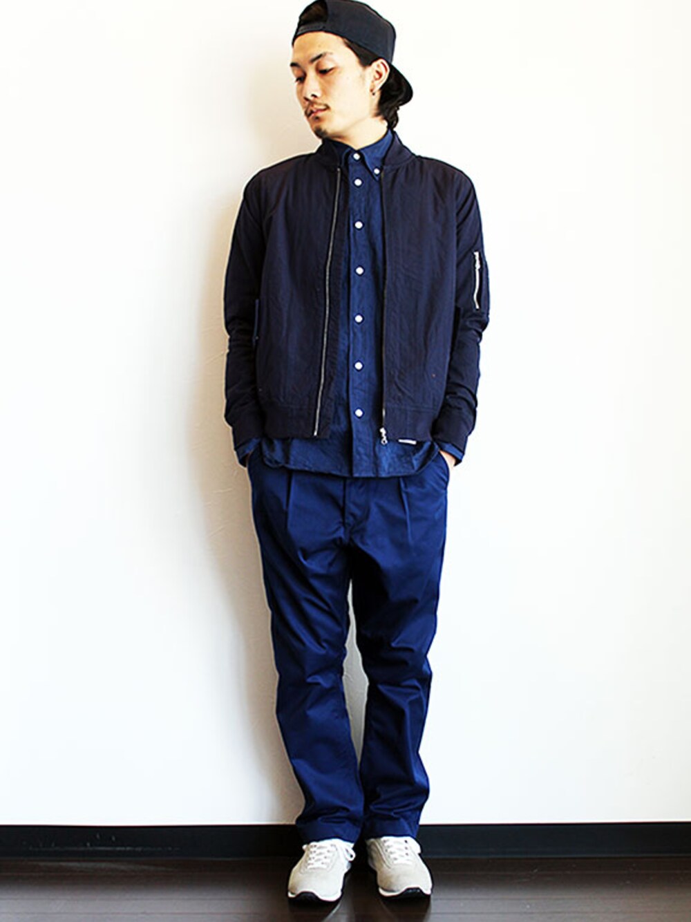 [モデル 174cm 62kg 足サイズ 27cm ] CAP : THE STAKE (ザ・ステイク) " S LOGO New Era SnapBack Cap " OUTER : Editor's (エディターズ) ローン×裏天竺 フライトJK (サイズM着用) TOPS : San (サン) " Mini Herrinngbone Triple Stitch B.D Shirt " (サイズM着用) PANTS : Ordinary fits (オーディナリーフィッツ) " TUCK T/C CHINO "(サイズ1着用) SHOES : blueover (ブルーオーバー) " Mikey " velour (サイズ5着用)