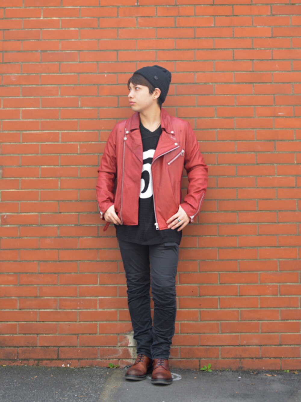 全身ブラックで統一!ジャケットだけは赤でインパクト!!!