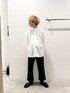 ご覧いただきありがとうございます! 白のシャツに黒のパンツでシンプルにまとめてみました!パンツはデザインが入っていてかわいいかんじです!靴はマーチンの3ホールの紐をステッチの色と合わせてさし色にしました! ぜひお試しください!